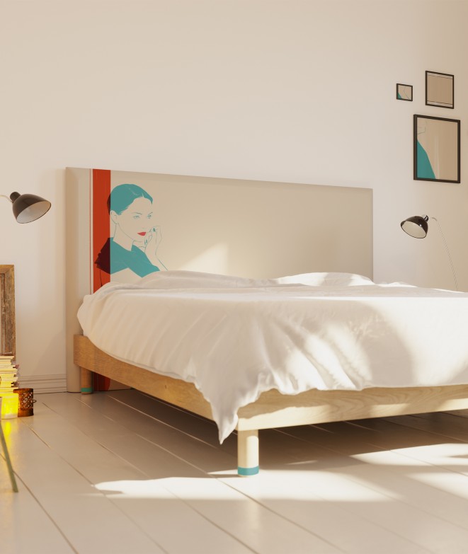 L'illustrateur de mode Hossein Borojeni révèle sous son pinceau l'essence de l'élégance à la française. Après nous avoir offert une vue imprenable depuis les toits de Paris, l'artiste brosse le portrait de la femme française au style indémodable. Cette tête de lit design offrira une touche chic à la décoration de votre chambre. La collection myQuintus allie esthétique et confort avec ses têtes de lit composées d'une structure en bois recouverte d'une mousse identique à celle utilisée dans les matelas. Finies les postures douloureuses, adossés contre le mur froid, nos modèles made in France vous procureront bien-être et détente à l'heure du coucher.