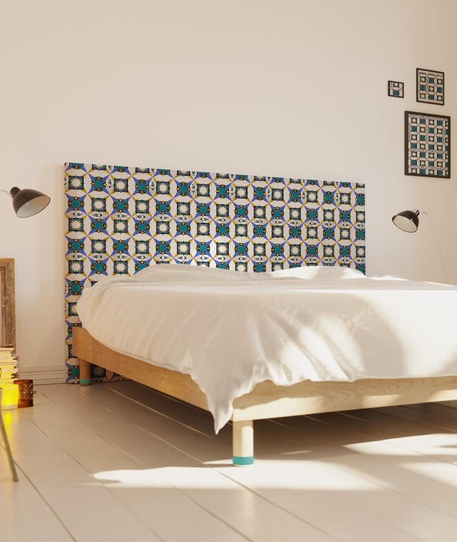 Envie d'une décoration hors des sentiers battus pour votre chambre à coucher ? Optez pour cette tête de lit à motifs géométriques inspirés des arts africains, et parsemée de petites blattes colorées. Et oui, vous avez bien lu, ces petits insectes que l'on détesterait voir pulluler dans nos intérieurs sont mis à l'honneur dans un décor de tête de lit aux entrelacs géométriques imaginé par Maya Thomas. Alors si vous n'avez pas peur de vous endormir au milieu des insectes, cette housse de tête de lit des plus originales est faite pour vous.