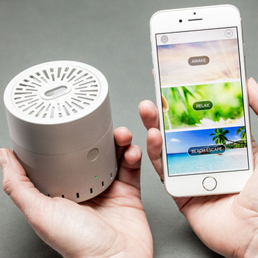 Pour lutter contre l’endormissement de nos sens, la start-up parisienne Vapor Communication a mis au point un diffuseur connecté baptisé Cyrano capable de nous faire voyager grâce à une playlist olfactive.