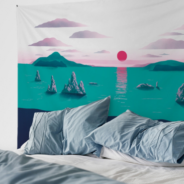La tapisserie confectionnée en France « Jellyfish And Sunset » par Nikol
