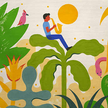Ligne claire, rondeurs et compositions graphiques, laissez-vous porter par la mélopée tropicale imaginée par l'artiste Laurent Moreau. Une invitation au voyage dans une jungle luxuriante et colorée sous fond d'un concerto de saxophone endiablé. Une tête de lit décorative aux couleurs vibrantes qui réchauffera l’ambiance de votre intérieur.