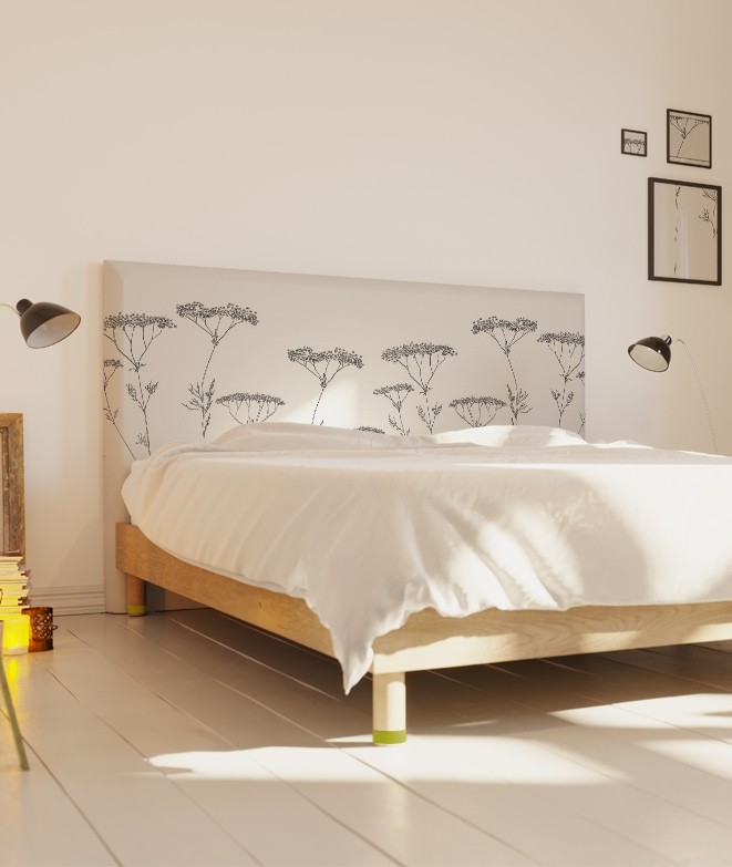 Avec son motif floral très fin et épuré, cette tête de lit nature se fondra dans le décor de votre chambre à coucher, apportant une touche de fraîcheur et d'originalité. Comme un vent d'air frais dans votre literie, la tête de lit déhoussable « Végétal » séduira les amoureux de la nature en créant une ambiance douillette et respirante. Imaginé par l'artiste Axelle Grosperrin, ce motif représentant de fines fleurs aux longues tiges effilées est décliné en deux teintes : noir et blanc, afin de convenir parfaitement à l'univers de votre chambre à coucher. Apportant calme et sérénité, cet accessoire design est votre compagnon idéal pour trouver le sommeil et vous relaxer.